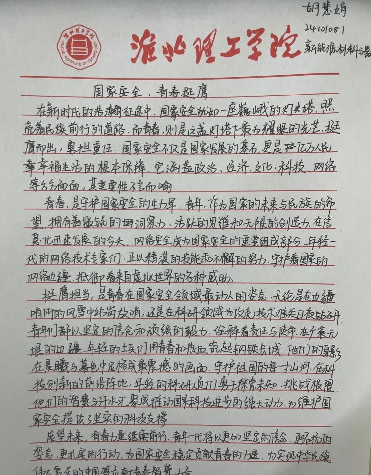 “国家安全,青春挺膺”感悟心得征集活动得到了同学们的积极响应,大家结合系列活动的参与体验,纷纷拿起笔,写下自己对国家安全的深刻感悟。有的同学在心得中写道:“国家安全是国家生存发展的基石,作为新时代青年,我们应立足专业,努力学习,为国家的文化安全和科技创新贡献力量。”还有的同学表示:“通过这次活动,我更加明白国家安全就在身边,我们要从点滴做起,自觉维护国家尊严和荣誉,以实际行动践行青春挺膺的誓言。”这些真挚的感悟,凝聚着同学们对国家安全的深刻理解和担当意识,也展现了bevictor伟德青年学子积极向上的精神风貌。