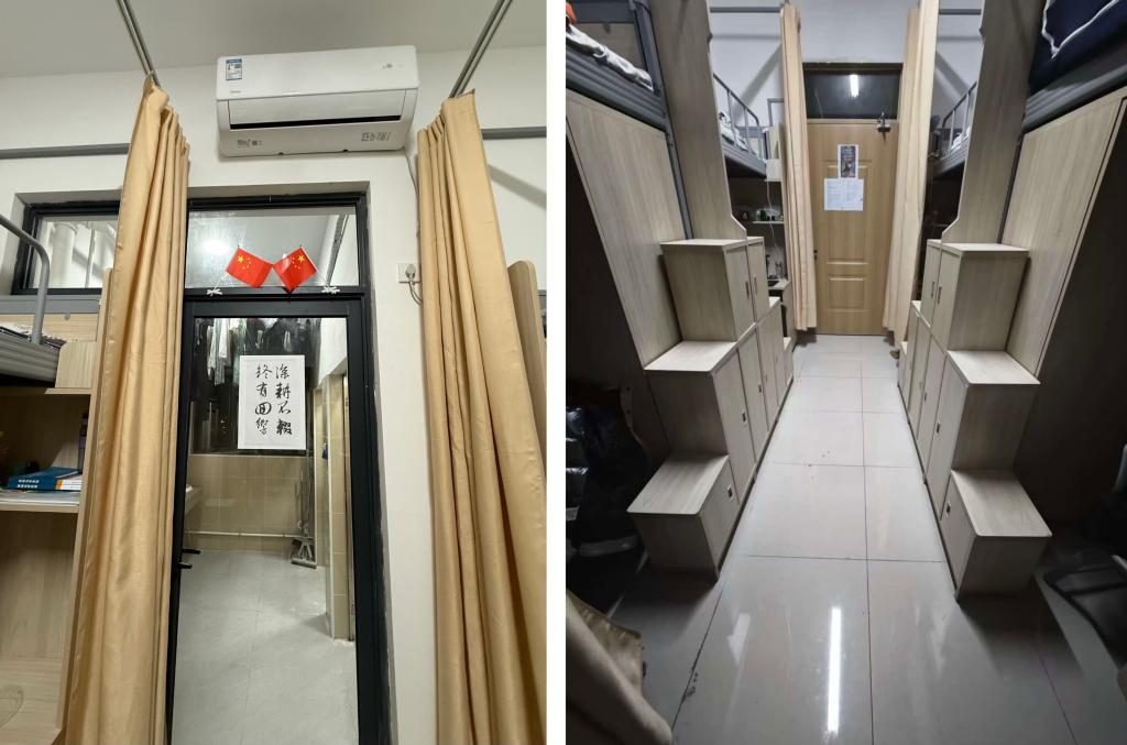 大赛筹备阶段,各寝室严格遵照寝室检查评分细则,全力投入赛前准备。11月25日至26日,评比小组成员开展全面寝室检查,从阳台卫生间的洁净程度,到床铺桌面的整齐摆放,再到地面卫生的细致清扫,逐一进行严格打分。更值得关注的是,有的寝室巧妙融入专业特色元素,用科普海报点缀空间,将专业学习与寝室布置完美融合,同时各寝室制定详实的寝室公约与值日表,彰显出良好的生活习惯与集体意识。